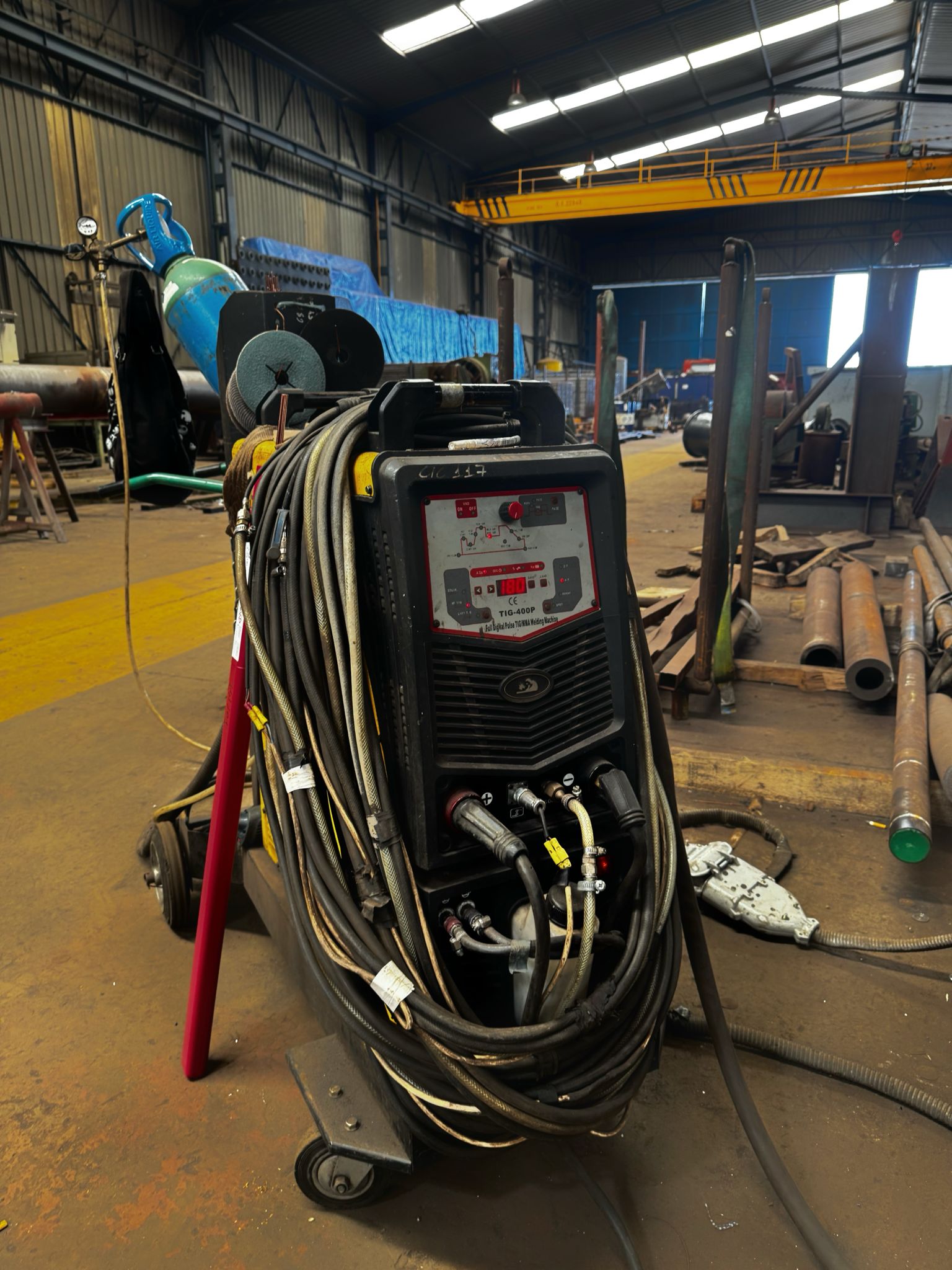 - 2 Máquinas de soldadura de paneles de diseño propio TUBO-ALETA MAG/FCAW. Longitud de panel 25000 mm, ancho por panel 950 mm, soldadura continua de hasta 4 uniones simultáneos.